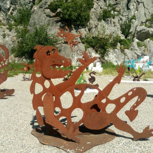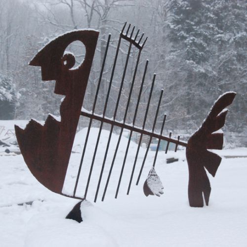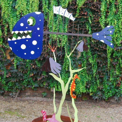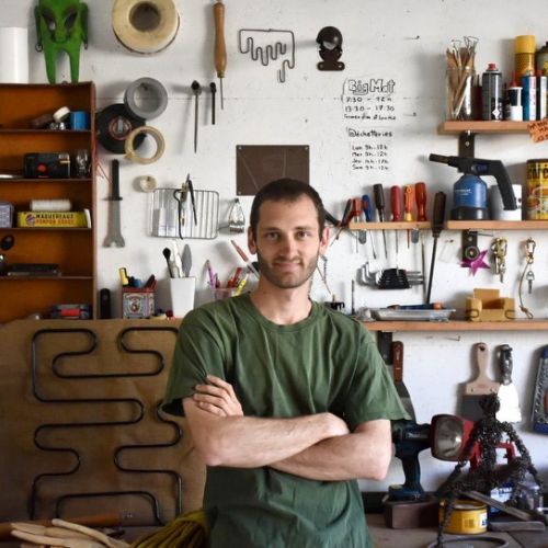 Depuis son plus jeune âge, il dessine. Et pour cause, enfant, Franck Mercky était « le gribouilleur de la famille. » Après avoir intégré la célèbre école Boulle, l’artiste a fait un crochet par les Beaux-Arts de Paris où il s’est consacré à la sculpture. Son terrain de jeu ? L’acier, la soudure, le façonnage et la mise en forme du métal « Je fais des bestioles à bascule, des oiseaux, des échassiers, des serpents de mers…J’aime jouer sur l’équilibre.» Et l’artiste aime surtout ô combien détourner des objets du quotidien tels que des marteaux, pinces ou encore des scies pour en faire des œuvres originales et poétiques à souhait « Le monde qui m’entoure n’est pas forcément à ma convenance alors j’aime me plonger dans cet univers ludique. Ce sont des créations qui amènent au sourire. » Et ces créations sont aussi bien de petites pièces propices pour mettre en intérieur que de grandes pièces pour les jardins.