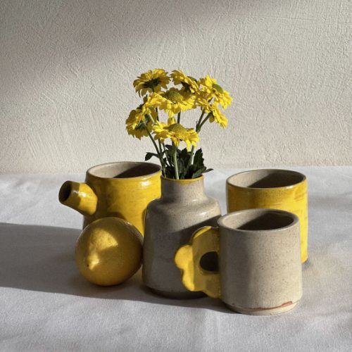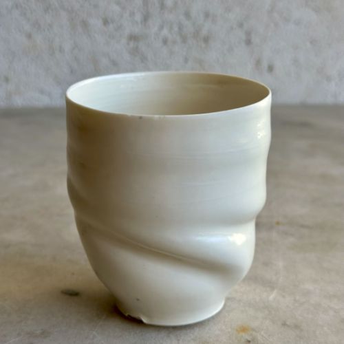 Résident à la Poèterie depuis 2023, son travail du grès et de la porcelaine, avant tout utilitaire, explore le mouvement et s'adresse aux sens. Les volumes s'y désaxent comme pour imprimer la mémoire du geste. Chaque pièce, cuite au feu de bois, est unique et conjugue avec precision esthétique et ergonomie.