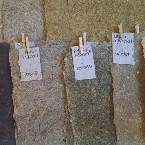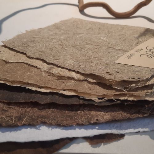Depuis peu, je fabrique moi-même mon papier, que le papier soit à base de chiffons – à l'ancienne – ou végétal ( de mon jardin, des fossés, des maraîchers...)