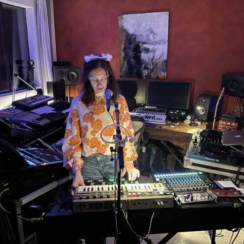 Animée par le besoin de créer un univers sonore personnel, j’acquiers mes premiers synthétiseurs et boîtes à rythmes analogiques afin de façonner mes propres textures et rythmes. Progressivement, ma voix vient s’y mêler, apportant sens, émotion et couleur à mes compositions.