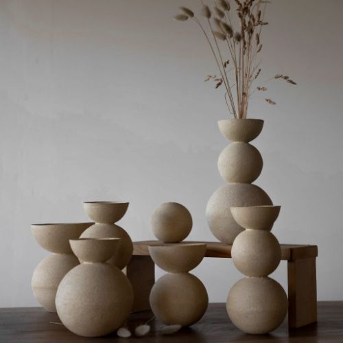 Pensées dans une relation étroite entre usage quotidien et présence sculpturale, les créations de Loïc se distinguent par leurs déformations singulières et leurs aspérités qu'il laisse à ses mains, puis aux flammes, le soin d'ancrer dans la matière.