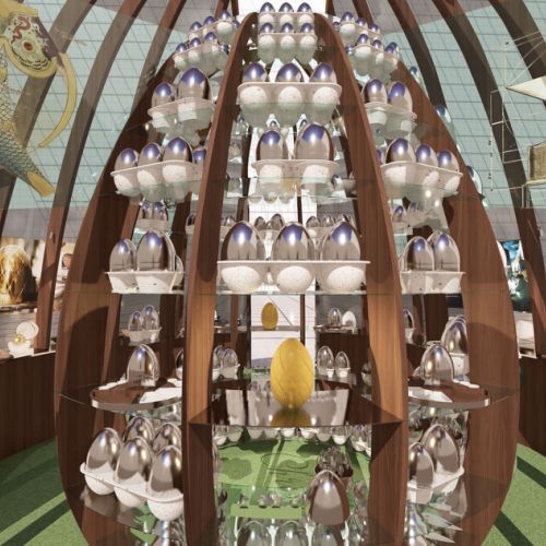 C’est ainsi que des colonnes fragmentées cohabitent avec des oeufs géants émergeants du sol ou de grands personnages venus d’un autre temps.